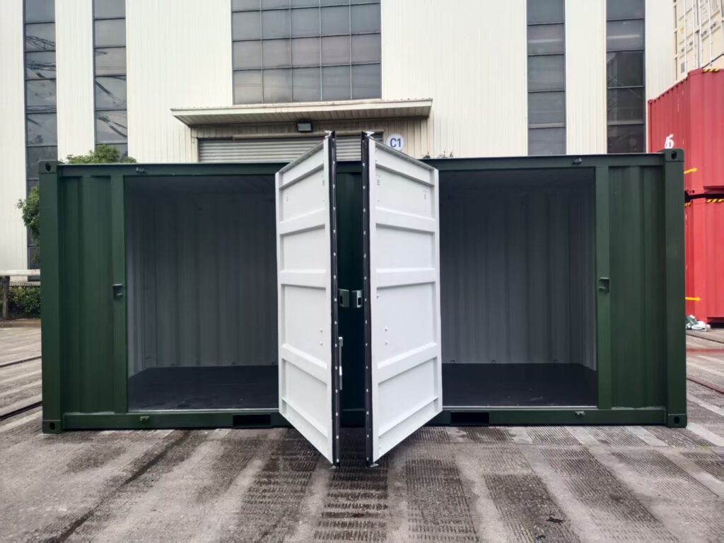 20ft standard height multidoor container split into 2 x 10ft storage units. This bespoke storage solution provides 2 x 80 sq ft storage compartments. Steel partition walls fitted at our factory divide the container up into two storage units. With individual easy open door handles on each compartment, these containers come with lockboxes fitted at the factory, plenty of air vents for maximum airflow and PSF coated flooring to keep your storage units clean. This type can be in standard door width and extra wide door width as per photos. Please note this type incorporates wider doors therefore allowing for larger, bulkier items to be placed within the storage unit.